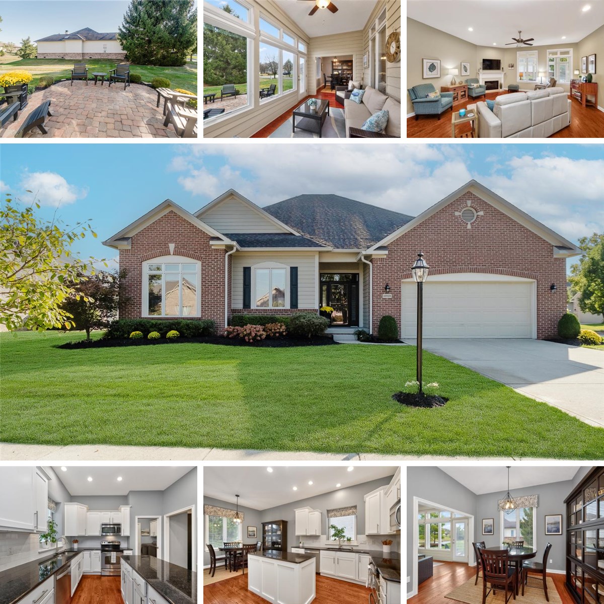 Custom-built ranch in the heart of Fishers, impeccably maintained and beautifully updated, located in a quiet, low-maintenance neighborhood. Enjoy peace of mind with a new roof coming in 2026. This gorgeous home offers two spacious bedrooms plus a versatile office, two fully updated bathrooms, and abundant closet space for extra storage. Relax with a good book or your morning coffee in the enclosed, all-season sunroom, filled with natural light and offering serene pond views. Standout features include 10-foot ceilings throughout, gleaming hardwood floors, a large office, and a welcoming great room with a gas fireplace. The kitchen is well-appointed with a center island, stainless steel appliances, granite countertops, and a pantry. The spacious primary suite features a tray ceiling and a spa-like bath with a zero-entry shower, separate tub, and his-and-her walk-in closets. The second bedroom is ideal for guests and offers convenient access to a full bathroom. Additional highlights include a fully finished garage with pull-down attic stairs for extra storage. The HOA handles lawn care and snow removal, making for truly easy living. All of this in a prime location, close to interstates and just minutes from the Fishers Yard District.