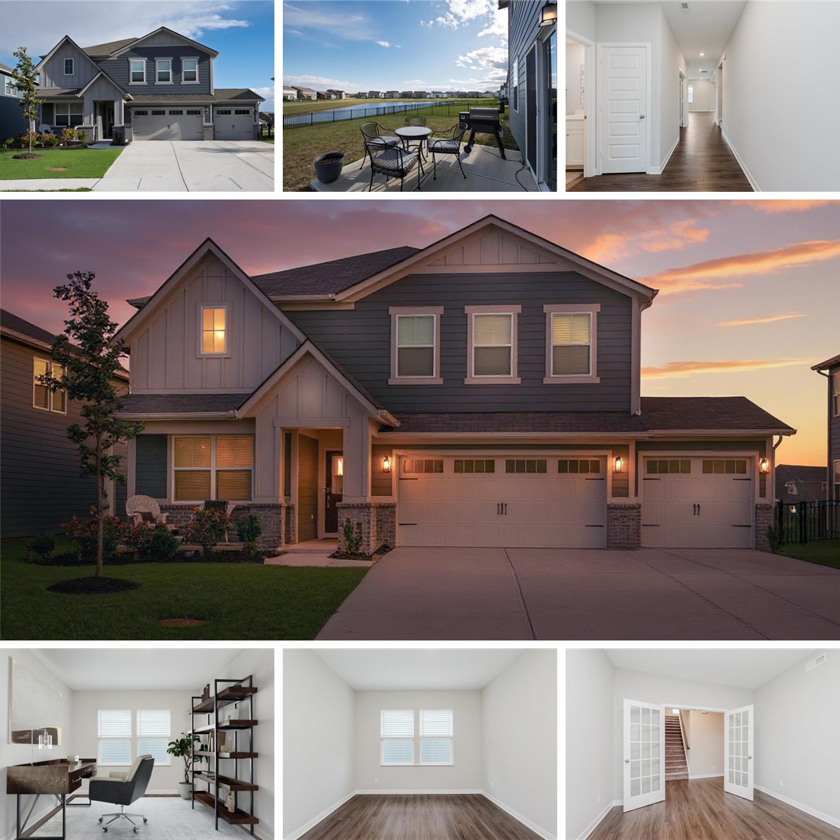 Welcome to this stunning 5 bedroom + loft home with 3 full baths featuring an expansive floor plan perfect for modern living. The main level features a convenient bedroom and full bath, ideal for guests or an in-law suite, plus a bright home office with French doors. The open-concept kitchen, dining area, and family room create a welcoming space for entertaining, with the kitchen offering ample storage, stainless steel appliances, center island with extra seating and a pantry. Enjoy a fenced backyard with a patio and tranquil pond views, along with easy access to neighborhood trails. Upstairs, find four spacious bedrooms with ample closet space and a versatile loft, along with a laundry room and a hall bath with double sinks. The primary suite offers a large shower, double sinks, and a huge walk-in closet. Additional highlights include a 3-car garage and freshly painted areas. Located in a friendly neighborhood with a community pool and playground, this home is perfect for those seeking comfort and convenience. Don't miss out on this incredible opportunity!