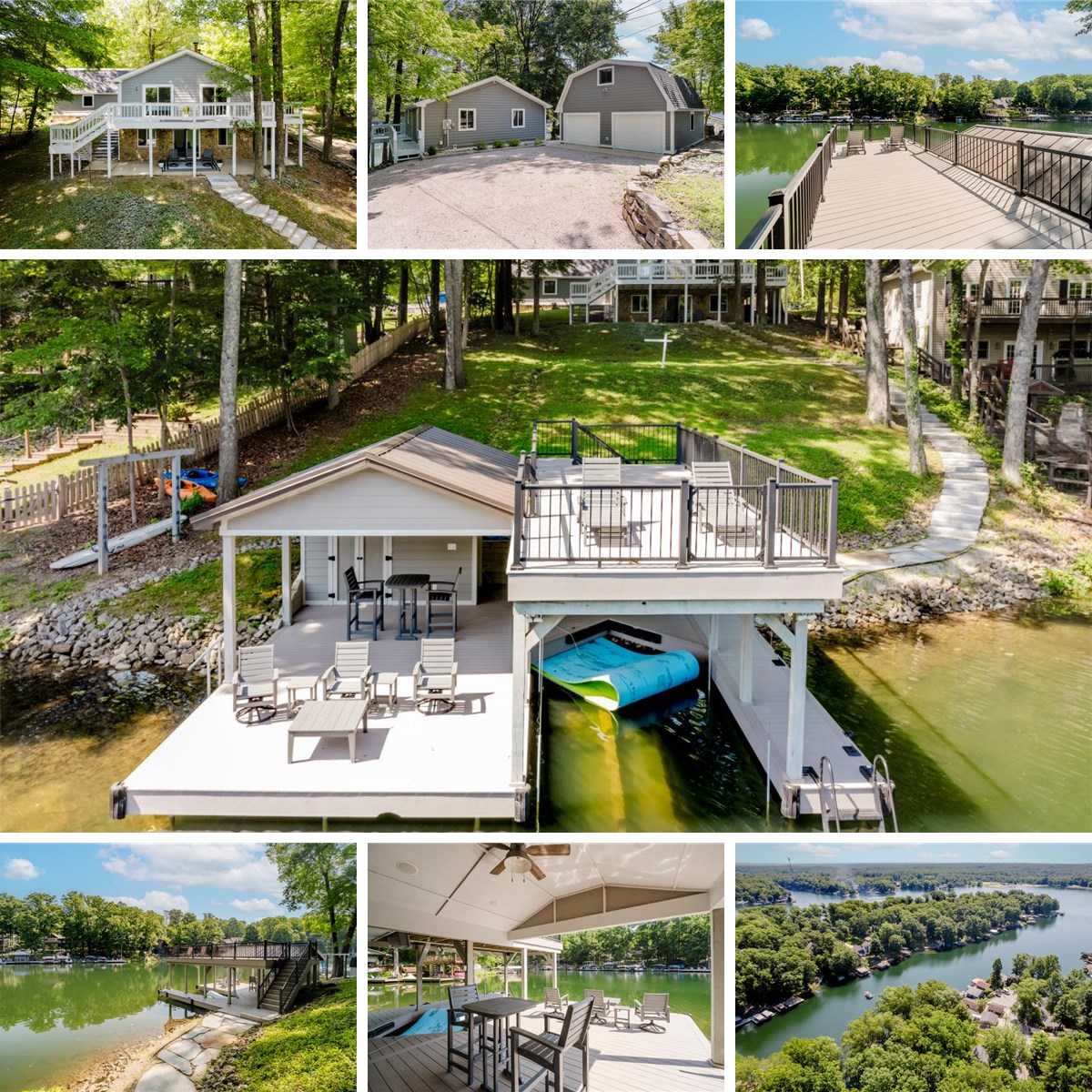 This move-in ready Sweetwater Lake waterfront property has been completely remodeled from top to bottom over the past 7 years. New roof, gutters, windows, HVAC, electric, appliances, flooring, drywall, doors, plumbing, cabinets, etc. Couches from Kittles, beds to sleep 10, and exterior Pollywood furniture are included with the home purchase - start enjoying the Summer immediately. The home's main level features four spacious bedrooms with luxury vinyl plank flooring and an updated full bathroom. Two bedrooms offer direct access to a large deck with beautiful lake views. The walk-out lower level includes a fully updated kitchen with granite countertops, Whirlpool stainless steel appliances, and a large center island with seating. The open-concept layout includes a family room with a stone fireplace, dining area, and a second full bathroom. Enjoy the lake from your AZEK dock with boat lift, speakers, built-in storage, over water covered seating area and an upper-level party deck. The oversized two-car detached garage includes upstairs storage for work or play. The property is a lot and a half with 60' of lake frontage. The U-shaped driveway has room for a crowd of cars. Multiple entertainment zones-house, deck, garage, and dock-make this an ideal property for hosting and relaxing. Start enjoying all that lake life has to offer!