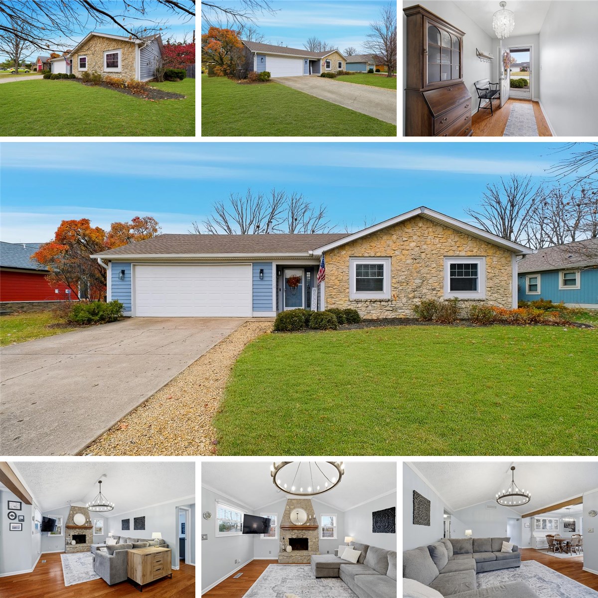 Welcome home to this beautifully maintained 3-bedroom, 2-bath ranch in the highly sought-after Eagle Nest neighborhood. From the moment you step inside, the spacious foyer welcomes you into an inviting open floor plan, highlighted by a vaulted ceiling and a stunning stone, wood-burning fireplace that serves as the heart of the home. Thoughtful touches are found throughout, including hardwood floors, crown molding, updated lighting. The dining room features a charming built-in hutch, adding both character and functionality. The kitchen is bright & cheerful with white quartz countertops, white subway tile backsplash, tile flooring, all appliances included, and a convenient built-in coffee bar-perfect for your morning routine. Both bathrooms feature brand-new tile flooring, and the home offers abundant closet space and storage throughout. Step outside to enjoy a spacious, fully fenced yard complete with a large deck and storage shed. A great private yard, ideal for relaxing, entertaining, or gardening. Located near the schools and just minutes from interstate access and Castleton area restaurants & shopping, this home combines comfort, style, and convenience in one exceptional package.